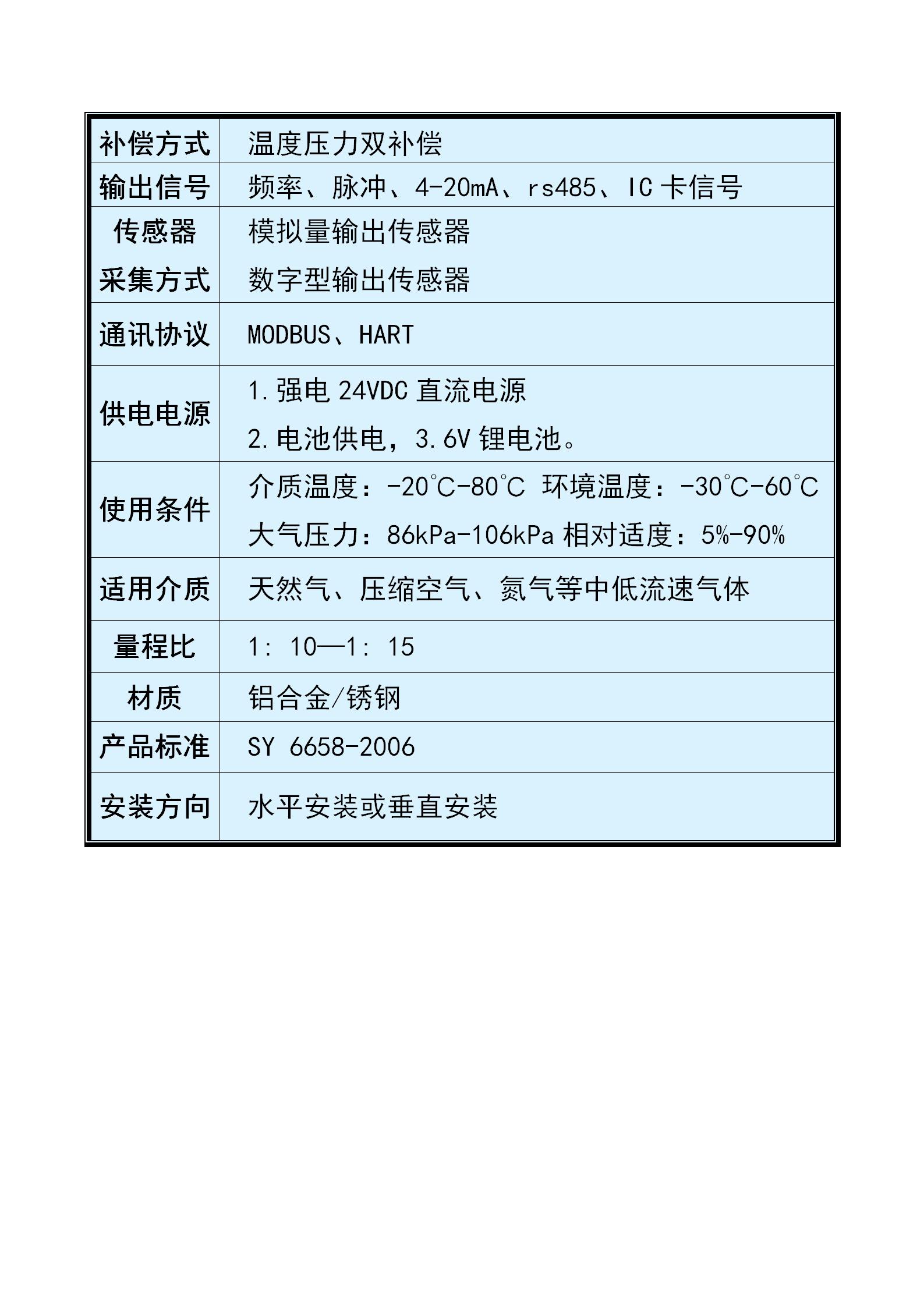 ◆采用漢字點(diǎn)陣顯示屏,顯示位數多,讀數直觀(guān)方便,可直接顯示工作狀態(tài)下的體積流量、標準狀態(tài)下的體 積流量、總量,以及介質(zhì)壓力、溫度等參數;