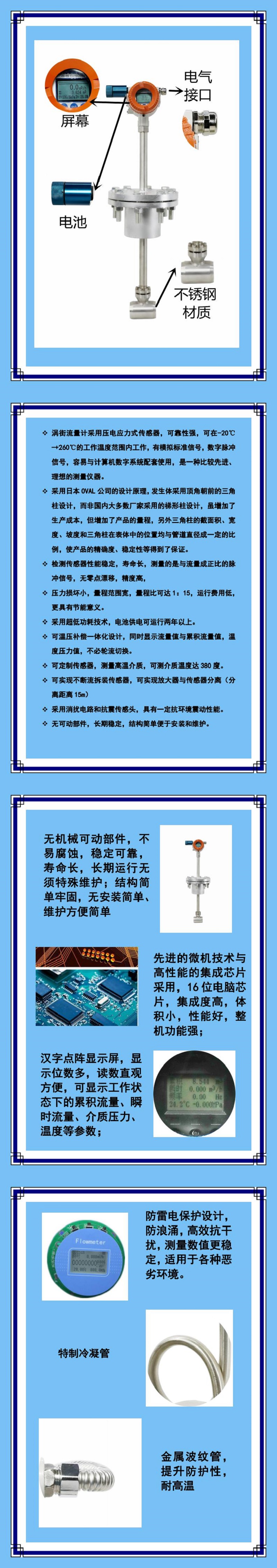 DYUCB型插入式渦街流量計可廣泛的適用于各個(gè)行業(yè)大口徑氣體、液體、蒸汽流量等的計量,也可測量含有微小顆粒、雜質(zhì)的渾濁液體,分經(jīng)濟型和精密型兩類(lèi)。